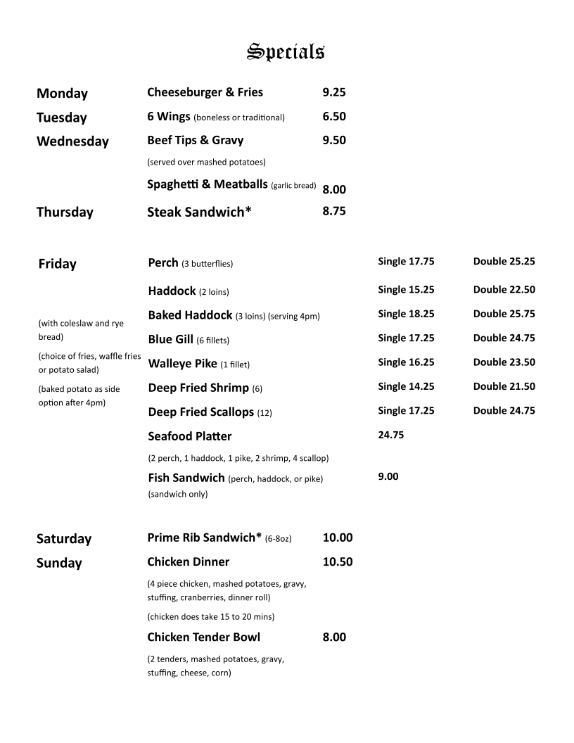 - Fish Fry Fridays: With perch and walleye, this weekly special has become a tradition for many families.